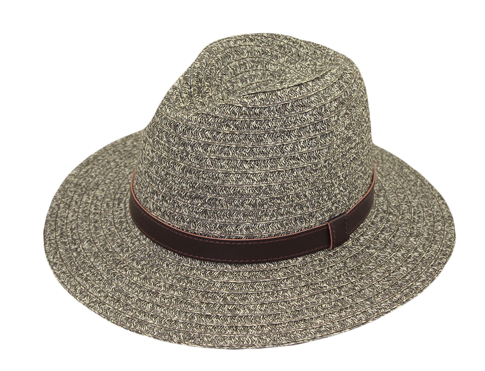 Men's Hat- Paperbraid, 3" brim, fedora crown, leatherette band around crown